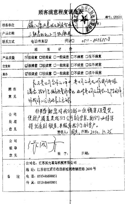 In 2010, we were rated as a Star Enterprise in Jiangsu Province by Jiangsu Quality Supervision and Management Center.