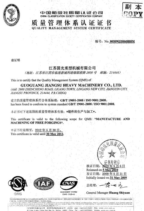 Since 2006, we have been a member of China Forging Association (certificate number: 6000125).